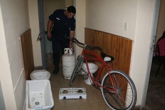 Un lavamanos, una bicicleta, un bidet, una cocina anafe, una pileta de lavar y una garrafa fueron las cosas que secuestraron el lunes a las 18 policías de la Comisaría 30ma. tras dos allanamientos en el Bº Cerro Blanco y Marquesado I, Rivadavia. Todo había sido sustraído el domingo último de una finca del ex intendente de ese departamento, José Sirerol, según la policía. Hay tres jóvenes presos.