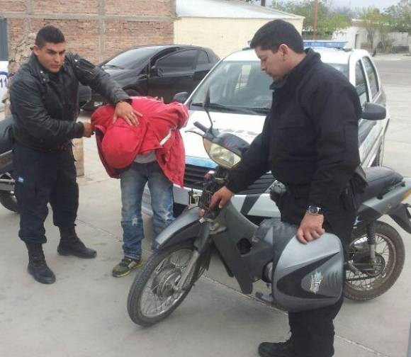 Dos jóvenes fueron apresados ayer por el oficial Gastón Ochi y los agentes Diego Lara, Ricardo y Eric Castro (Motorizada V) tras robarle una moto Guerrero 110cc a su vecino de la Villa Morrone, Chimbas. En la Policía indicaron que Braian Ontiveros (18) fue apresado junto a su cómplice, un chico de 16 años.
