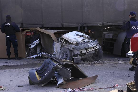 Para la jueza Peña Sansó de Ruiz, esa imprudente maniobra provocó el fatal accidente. En la causa, cuatro testigos declararon que el camión cruzó deliberadamente. Además, las pericias indican que las luces estaban sucias, al igual que las bandas refractarias de los costados. Eso hacía que el camión no se observara a la distancia, tal como declararon los testigos. Uno de ellos contó que alcanzó a pasar por delante del camión y, como vio las luces de otro coche que se acercaba, se dijo: "ojalá lo vea", pero después escuchó el estruendo, según el expediente. Ese otro auto era el Ford Escort, cuyo conductor no alcanzó a frenar a tiempo y se estrelló contra el camión, quedando debajo del acoplado. Sus cinco ocupantes murieron en el acto. Un tercer vehículo también chocó contra el mismo camión, pero no hubo heridos.