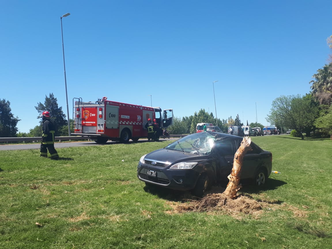 En horas de la mañana un fuerte accidente automovilístico tuvo lugar en Ruta 40 frente al comercio Makro. Un hombre quedó atrapado en el interior del vehículo que conducía luego de chocar con el guardarail y luego impactar contra un árbol. La policía se encuentra realizando las pericias correspondientes para conocer el motivo por el cual el auto se despistó.