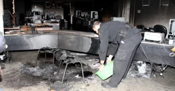 El ataque incendiario habría ocurrido a las 5 en ese local de calle Santa Fe 550 Oeste. Todo indica que alguien caminó hasta la entrada del garaje y rompió uno de los vidrios de la ventana para lanzar una ‘bomba Molotov’. Fuentes policiales informaron que los bomberos del cuartel central hallaron restos de una botella plástica que contenía brillapiso y un trozo de trapo.