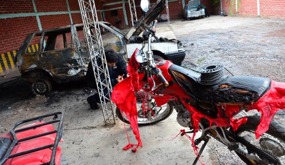 Justo el viernes era su cumpleaños, fue por eso que a las 20.30 cerró el negocio y guardó los vehículos bajo el tinglado. En el frente hay portones metálicos. A eso de las 2.30 de ayer, el comerciante recibió el aviso de que había fuego en la agencia. Después, él mismo junto a los vecinos apagaron parte de las llamas hasta que llegaron los Bomberos de Rawson. El siniestro destruyó por completo a un Fiat Uno que prácticamente ya estaba vendido. El fuego también dañó el costado derecho de una Ford Ranger y derritió parte de los plásticos de un cuatriciclo Honda 250cc y una moto Yamaha 125cc. Fuentes policiales revelaron que el fuego se inició en la parte trasera del Fiat Uno, eso indica que fue intencional.