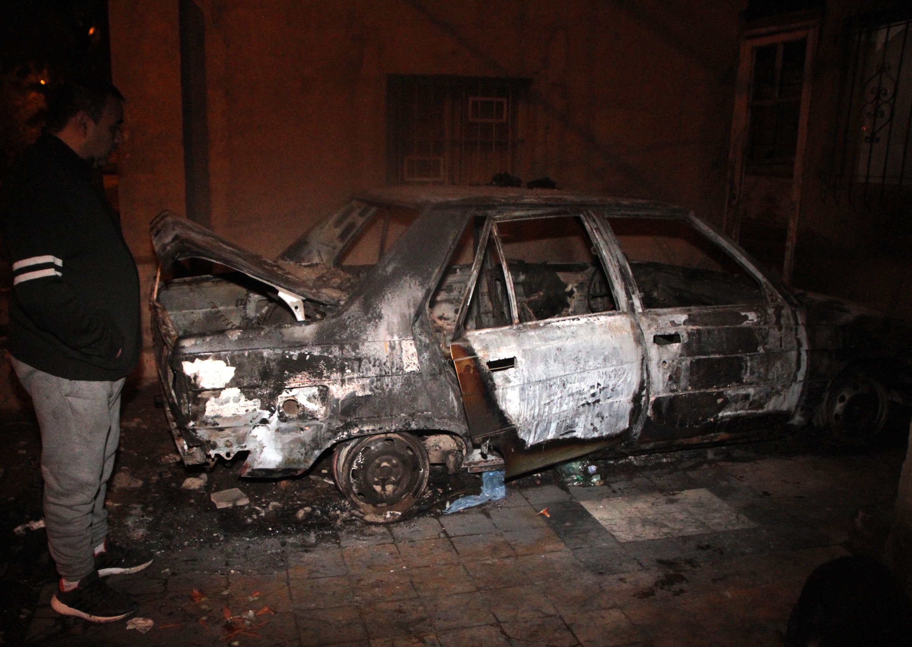 Una chica que vio todo desde una casa vecina dijo que observó a tres sujetos salir corriendo segundos antes de escuchar una explosión y de que el fuego se apoderara del rodado, comentó Vargas, de profesión enfermero. Y agregó que la puerta derecha trasera estaba abierta. "Parece que tiraron algo adentro para iniciar el fuego", indicó.