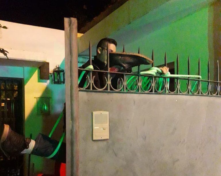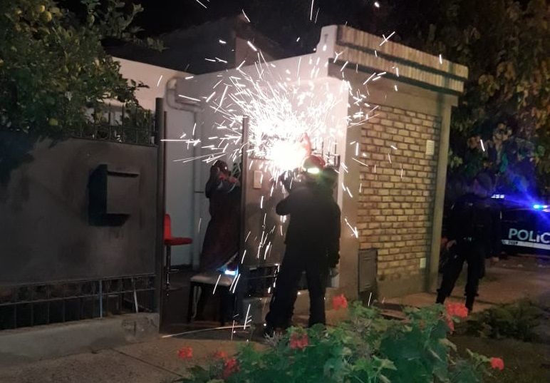 Sin embargo, el operativo de rescate no fue para nada sencillo. Con una manguera como un arnés improvisado para alivianar el peso de su cuerpo, vecinos utilizaron una amoladora para cortar la sección de reja que había atravesado al intruso.