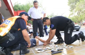 Pensado en frío, era un golpe de mucho riesgo, porque implicaba querer salir a salvo de un asalto en pleno día y en el microcentro capitalino, zona, a priori, atestada de policías. Pero a Pablo Vargas (28) eso no le importó y ayer a las 17.30, se metió al local de ‘Claro’ en Rioja e Ignacio de la Roza y encañonó a la dueña, a dos empleados y a dos clientes. Pero sólo embolsó un celular, pues los pedidos de auxilio y alguna resistencia de las víctimas lo pusieron en fuga. Como era de esperar, no avanzó más allá de la vereda: allí fue reducido por un agente de la Seccional 18va de Albardón que pasaba y efectivos del Cuerpo Especial de Vigilancia a cargo del comisario José Guzmán. Ahí se supo que la pistola 9mm con 3 cartuchos que portaba fue robada a un policía, y que pudo ser el que cometió 2 asaltos en Trinidad, informaron en la Fuerza.