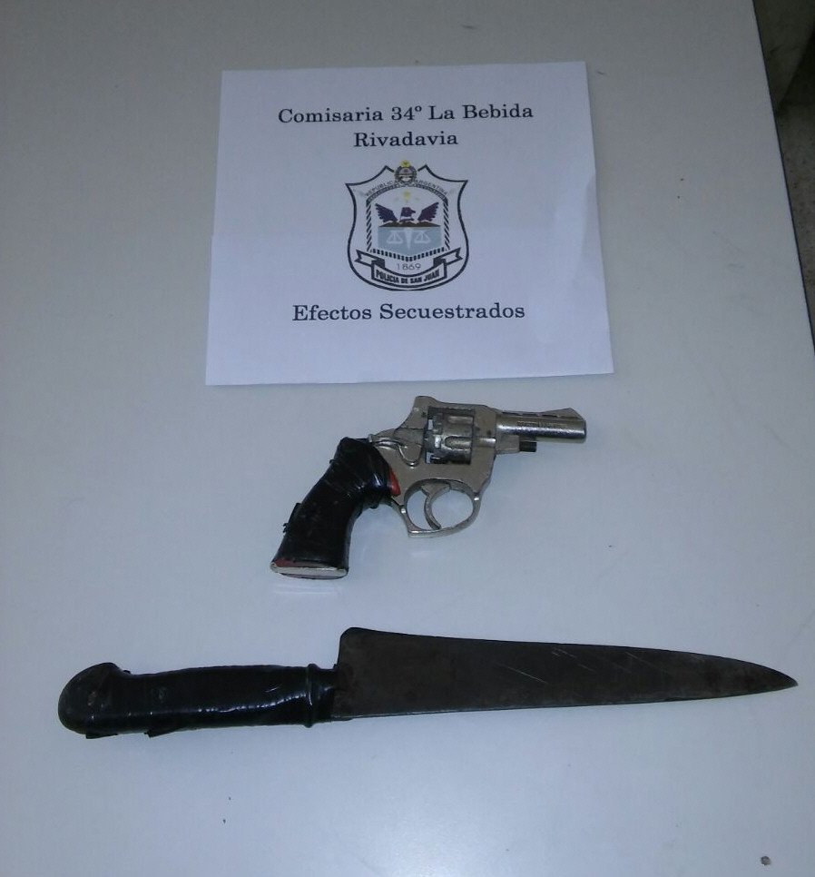 Un sujeto fue detenido ayer a las 3 por efectivos de la Seccional 34ta luego de que con un cómplice intentaran asaltar a una familia en el Bº Los Penitentes, Rivadavia. Tras el ataque, Federico ‘Bruja’ Aballay (24) fue detenido con un revólver calibre 22 sin cartuchos y con un cuchillo, informó la Policía.