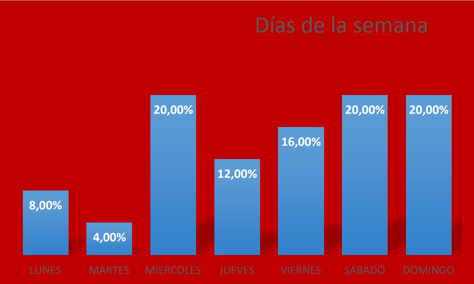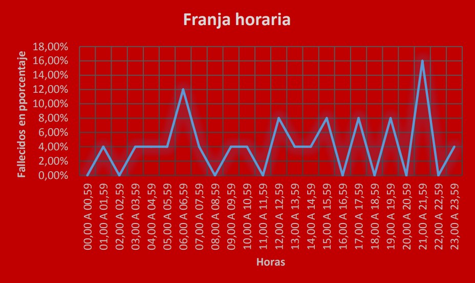 Según las estadísticas, los fines de semana arrojaron el mayor porcentaje de accidentes fatales, mientras que el miércoles sumó la misma cantidad en estos primeros meses. Por su parte, lunes y martes hubo una importante merma. Seguramente, las salidas a boliches, bares o restaurantes hayan tenido un lugar importante en los números finales. Por su parte, lunes y martes arrojaron los números más bajos. La franja horaria también dejó datos para tener en cuenta. El pico máximo de muertes se produjo de 21 a 22 y no en horas de la madrugada, como podría pensarse a priori. En segundo lugar quedó el lapso comprendido entre las 6 y 7 de la mañana.