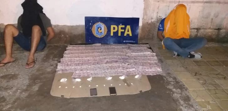 Una vez que fueron aprehendidos, se llevó a cabo una requisa exhaustiva del rodado. El resultado: se hallaron 18 bolsas de nylon que contenían la cocaína suficiente para elaborar 500 dosis. A instancias del Juzgado Federal N° 2 de Leopoldo Rago Gallo, se secuestró también documentación de interés para la causa y dinero en efectivo producto de la comercialización de narcóticos.