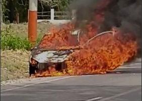 El conductor de un Peugeot 206 protagonizó un violento accidente en Rawson después de impactar de lleno contra un camión estacionado. El vehículo se prendió fuego y consumió por completo.