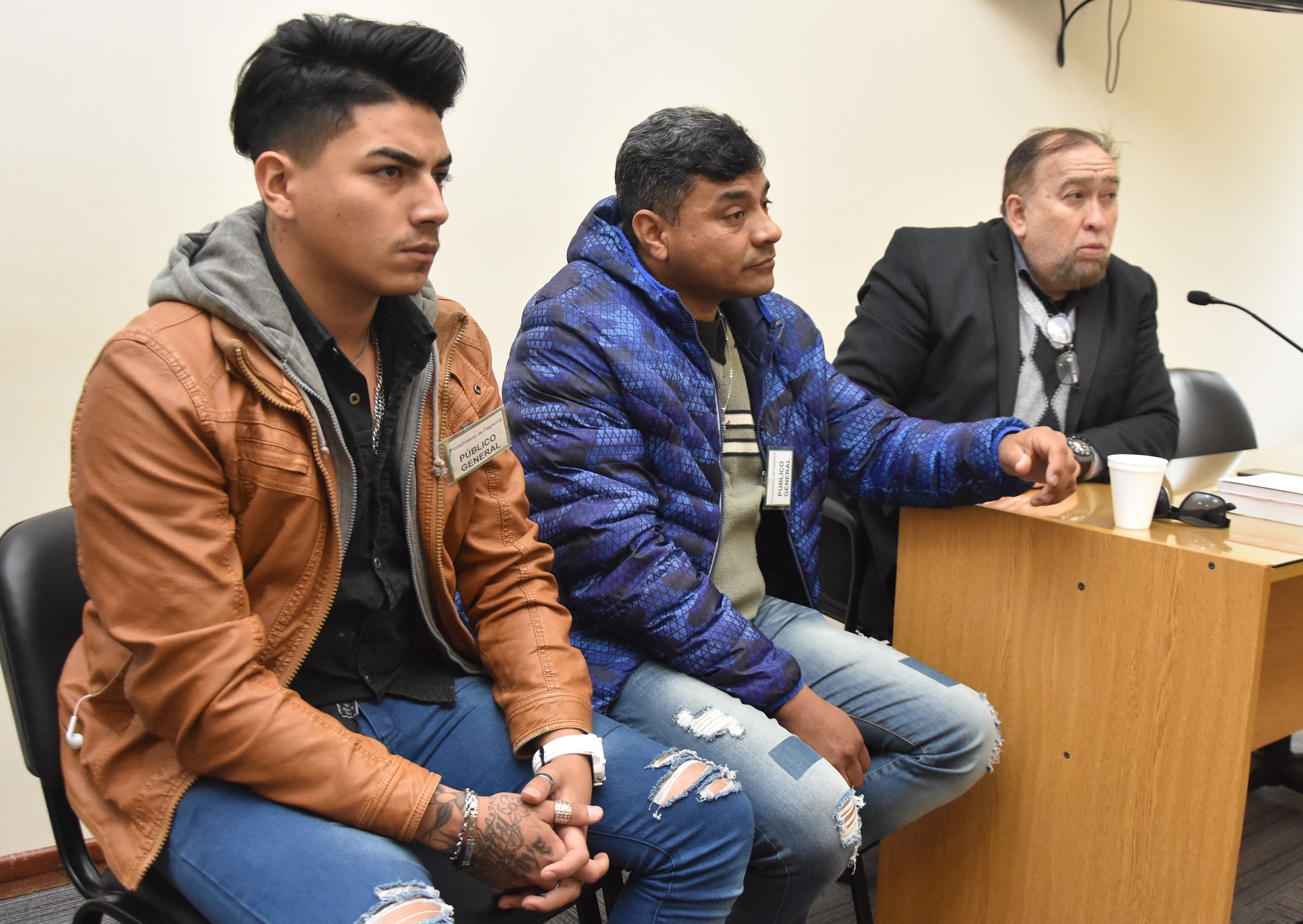 Réplica. Juan Alberto Guerra (centro) y su hijo Francis, señalaron al funcionario como quien inició todo. Su defensor, César Jofré, cuestionará la acusación.