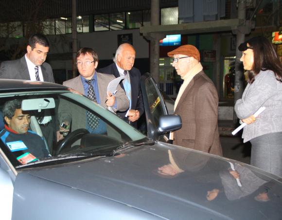 Los jueces Raúl José Iglesias, Juan Carlos Caballero Vidal y Silvia Peña Sansó (Sala I, Cámara Penal), realizaron ayer la reconstrucción del crimen de Víctor Peñaloza en República del Líbano 580 Oeste, en Rawson. Allí estuvieron con el propio imputado, el remisero Pablo Cuenca, su abogado defensor y exmagistrado Félix Herrero Martín y el fiscal Gustavo Manini. Ante todos ellos, Cuenca explicó cómo sucedieron los hechos dentro del auto (foto) aquella madrugada del 29 de julio de 2012, día en que trasladó a Peñaloza desde Concepción. Según su versión, el propio pasajero comenzó a insultarlo, lo agredió y sacó un arma para atacarlo, situación que él evitó defendiéndose. Otras pruebas contradicen ese relato.