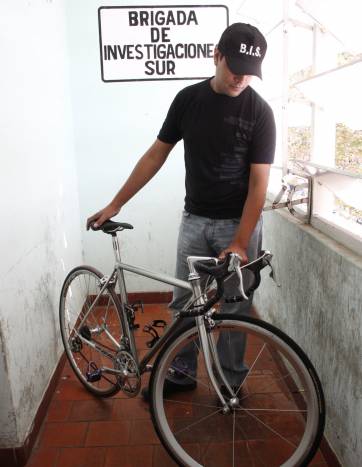 Policías de la Brigada Sur recuperaron ayer de manos de un ‘comprador de buena fe’, una costosa bicicleta (en la Policía dijeron que vale $30.000) que el jueves de la semana pasada fue sustraída de un supermercado Vea de República del Líbano y Alvear, aprovechando la confianza del hijo del dueño del rodado. La versión policial es que al hijo de Juan Caraballo se le rompió la moto y usó la bicicleta para hacer las compras. Que cuando llegó ofreció $10 a un joven para que se la cuide y al salir no encontró a ninguno.