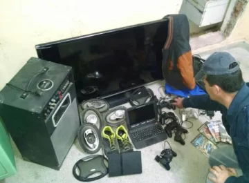 �Policías de la Brigada Este, detuvieron ayer a tres sujetos en el barrio Bermejo de Caucete, y recuperaron casi todo lo que le habían robado en la casa de un vecino. Incautaron un TV, un par de zapatillas, una campera, una Play Station y otras cosas que, al parecer, son de otros robos, como bafles, una netbook y un equipo de sonido. Los detenidos son ‘El Loco Tito’ Morales (20), ‘El Narigón’ Ibáñez (18) y un chico de 14 años, informó la Policía.