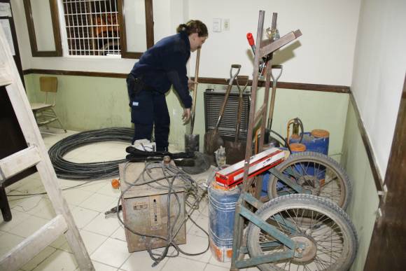 Los policías de la Seccional 29na. de Santa Lucía detuvieron ayer en la mañana a un presunto ladrón, identificado como Marcelo Garu (20), y recuperaron máquinas y herramientas que acababan de ser robadas del galpón de una finca en calle Italia, en Colonia Gutiérrez, en ese departamento. Secuestraron 1 máquina para estirar alambres, 3 mochilas para fumigar, máscaras protectoras, una soldadora con carro, 4 palas y cables, informó la policía.