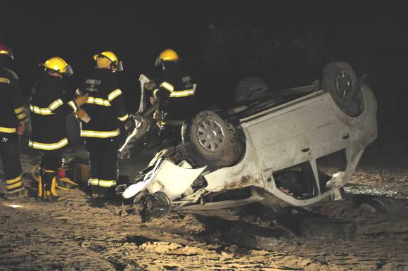 Carrizo habría dicho que el Logan, que circulaba al Oeste, se le vino encima y que ahí pegó el volantazo hacia la banquina Sur. El Volvo recorrió varios metros y comenzó a colear, se puso de costado y se arrastró unos 150 metros. El Scania no pudo esquivar el auto, que lo impactó en el costado izquierdo y salió hacia el Norte. En ese lugar, el Logan recorrió unos 30 metros dando tumbos. En las volteretas, despidió a Carrizo y los impactos en el techo del auto, decapitaron a Pérez, dijeron fuentes policiales.