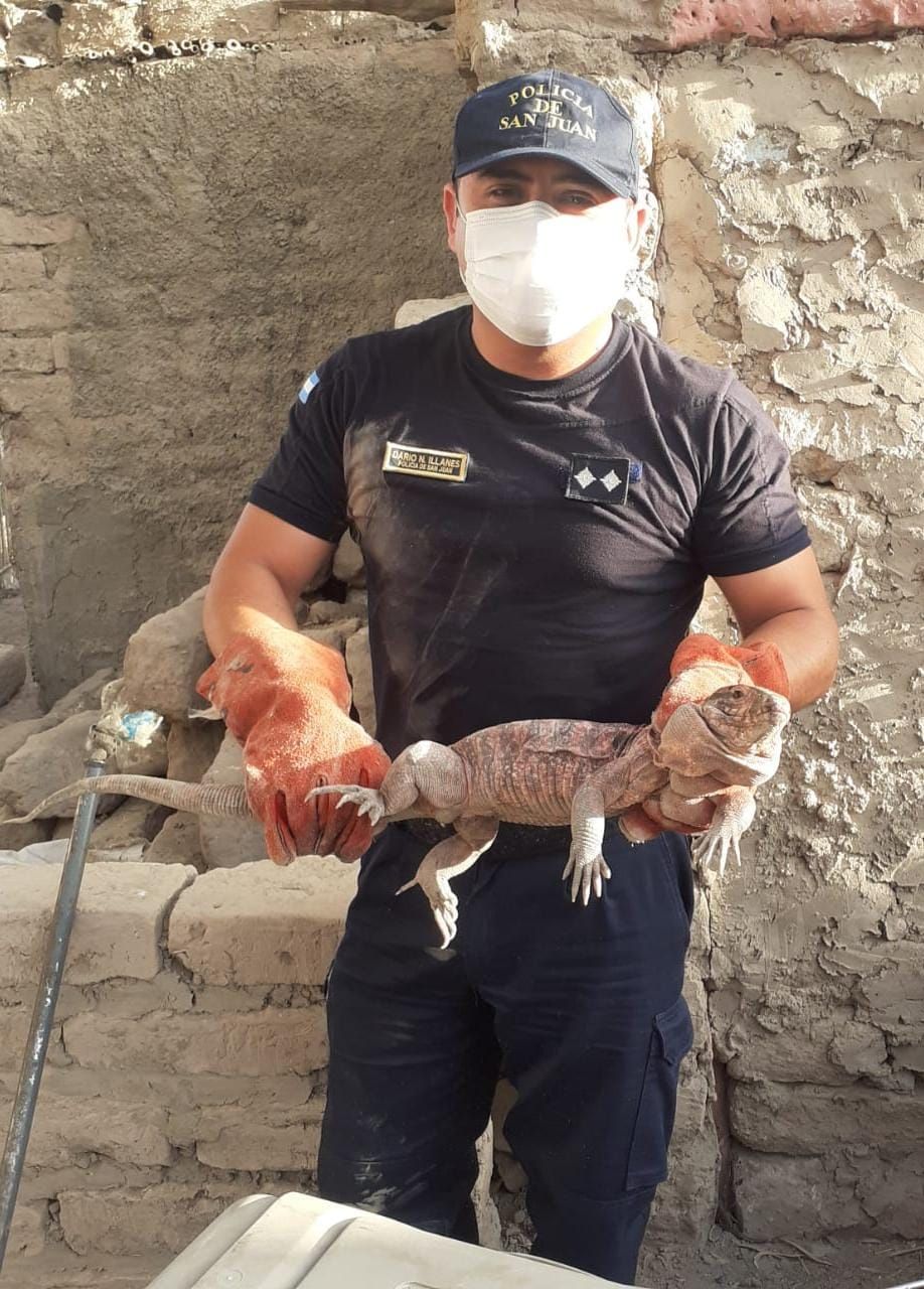 Personal de Policía Ecológica logró rescatar a una iguana de un descampado de Pocito. Según las fuentes, los efectivos de la división especializada en animales, llegaron hasta calle Aberastain, entre Calle 15 y 16, en Pocito por la presencia de un reptil, tal como relataron los vecinos.