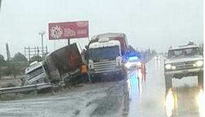 San Juan.- Un camionero perdió el control de la movilidad cuando reventó uno de sus neumáticos y terminó contra el guardarrail.