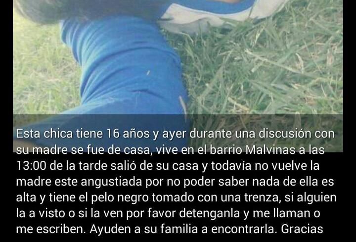 Según trascendió, Nazarena (se reserva el apellido debido a que es menor) se peleó con su madre ayer viernes, salió de su casa y nadie más supo de ella. Eso sucedió a las 13. Cerca de la noche, al ver que la chica no regresaba, la familia decidió realizar la denuncia en la Comisaría.