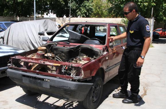Los policías de la Seccional 9na de Caucete encontraron ayer desmantelado, y dentro de un zanjón, al auto Fiat Uno que pertenece a una mujer policía y que fue robado el sábado último de calle Sarmiento en el centro capitalino. El coche fue hallado en las calles Justo P. Castro y La Plata, Caucete: le faltaba el motor, los faros, el radiador, la batería, el parabrisas, un paragolpe y otros accesorios.