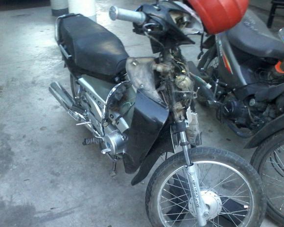 Dos motochorros fueron atrapados a las 16,40 de ayer, tras robarle la cartera a una mujer, huir en moto (foto) perseguidos por policías y chocar con un auto en Las Heras y General Paz, Capital. Rubén Darío Mercado (23) y David Eduardo Ramírez (30) fueron capturados por el oficial Thebault, los cabos Molina y Sánchez y los agentes Gómez y Violante (Comando Urbano), informó la Policía.