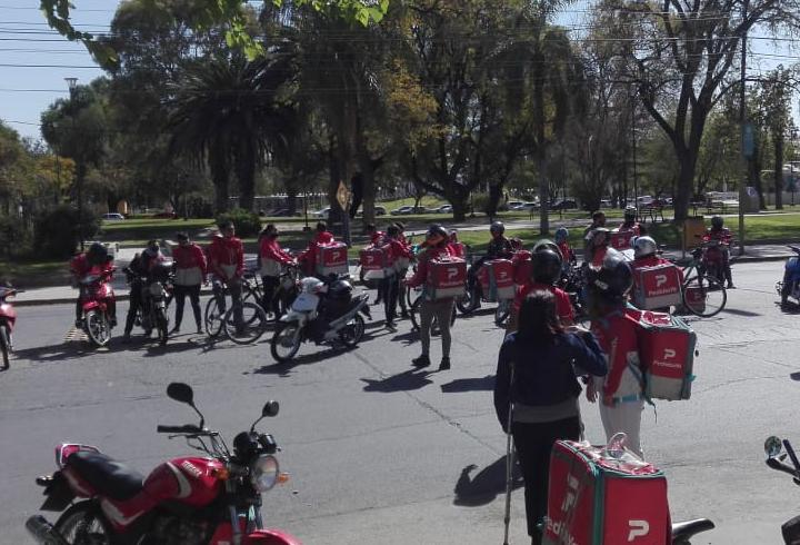 En la mañana de hoy un nutrido grupo de trabajadores de Pedidos Ya salió a la calle a reclamar por mayor seguridad, después que uno de los repartidores fuera asaltado a punta de pistola.