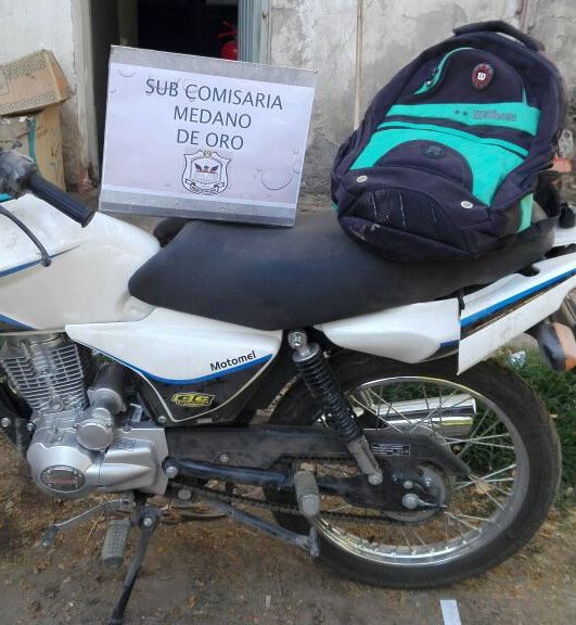 Dos sujetos identificados como David "Tucumano" Reyes (20) y Elías Cuello (18) fueron perseguidos y capturados por policías de Médano de Oro, en Rawson, cuando cayeron de la moto Motomel 125cc en la que huían con la mochila que le habían robado a punta de cuchillo a una estudiante, informó la Policía.
