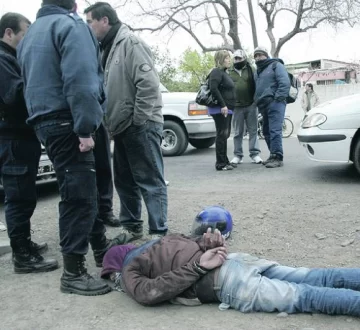 Andrea Araya hablaba por teléfono con su hermana cerca del mediodía de ayer cuando irrumpieron dos sujetos a cara descubierta y con un arma, exigiendo plata. La mujer estaba acompañada por su mamá Carmen cuando atendía su almacén en el cruce de calle Vieja y Florida, en El Medanito, Rawson, y no se resistieron. Es más, Andrea no dudó en decirles que se llevaran lo que quisieran, pero tomó una previsión que resultó clave para que el golpe fuera frustrado minutos después: no cortó la llamada y así su hermana supo que las asaltaban y llamó a la Policía. Enseguida todas las patrullas fueron alertadas de esos dos sujetos que, luego de encerrar con candado en su almacén a las mujeres, huyeron en una moto negra con una bolsa en la que habían cargado el botín. Esas descripciones fueron claves para que el oficial subinspector Nelson Otarola y el agente Fernando González (Comando Radioeléctrico a cargo del comisario Ricardo Guzmán) localizaran a los sospechosos en Abraham Tapia y Circunvalación, y empezaran a perseguirlos hasta que los sospechosos lanzaron un disparo cuando transitaban por calle Larraín, en la Villa Echegaray, Rawson. Según la Policía, esa maniobra provocó la respuesta con balas de goma que dieron en la espalda de la campera de unos de los sospechosos (Guillermo Rodríguez, 28 años, el otro es un chico de 16) cuando llegaban al cruce con Tucumán. Ahí, las cosas se complicaron para los sospechosos: cayeron de la moto Cerro 150cc. y fueron capturados con toda la evidencia que los complicaba, básicamente un revólver calibre 22 con dos cartuchos y una vaina servida (la del disparo), 724 pesos y 86 paquetes de cigarrillos, precisaron en la Policía.
