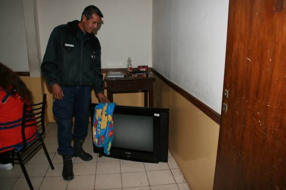 Policías de la seccional 29na. buscaban ayer al dueño de un televisor 29 pulgadas marcas Ken Brown que fue hallado alrededor de las 6 de ayer envuelto en una manta, por una vecina en el ingreso a su casa del Lote Hogar 26, en Santa Lucía. Los policías creen que el delincuente abandonó el aparato cuando vio el patrullero de la seccional.