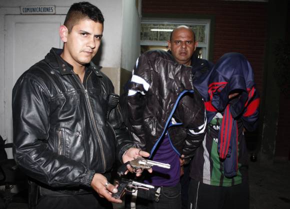 María Luna (58) había dejado la ruta nacional 40 y enfilaba en auto por Porres al Este, en Chimbas, cuando la sorprendieron dos motochorros a las 20 de ayer. Uno, abrió la puerta del acompañante y a punta de arma le robó una cartera con $2.000, documentos y tarjetas, un reloj, un anillo, una cadena con medalla. Y huyó con su cómplice a toda velocidad por Porres, pero al Oeste, dijeron fuentes policiales. Parecía un golpe exitoso, pero minutos después policías de la Motorizada V (el oficial Juan Allende y el agente Cristian Adaro) los persiguieron y los apresaron en Salta e Hipólito Yrigoyen, en el ingreso al barrio Güemes. Allí, un tercer sujeto escaparía con la moto y se presume que con el botín. Pero Mauricio Paulo Cantero (18) y Darío David Riañez (20) cayeron presos con una pistola calibre 22 y un revólver calibre 32, informó la Policía.