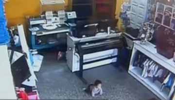 En el video puede verse el momento en que el menor se movía por todo el local mientras, sin saberlo, era testigo del violento asalto. La mujer, que tenía bolsas de consorcio en su cartera, empezó a cargar la mercadería.