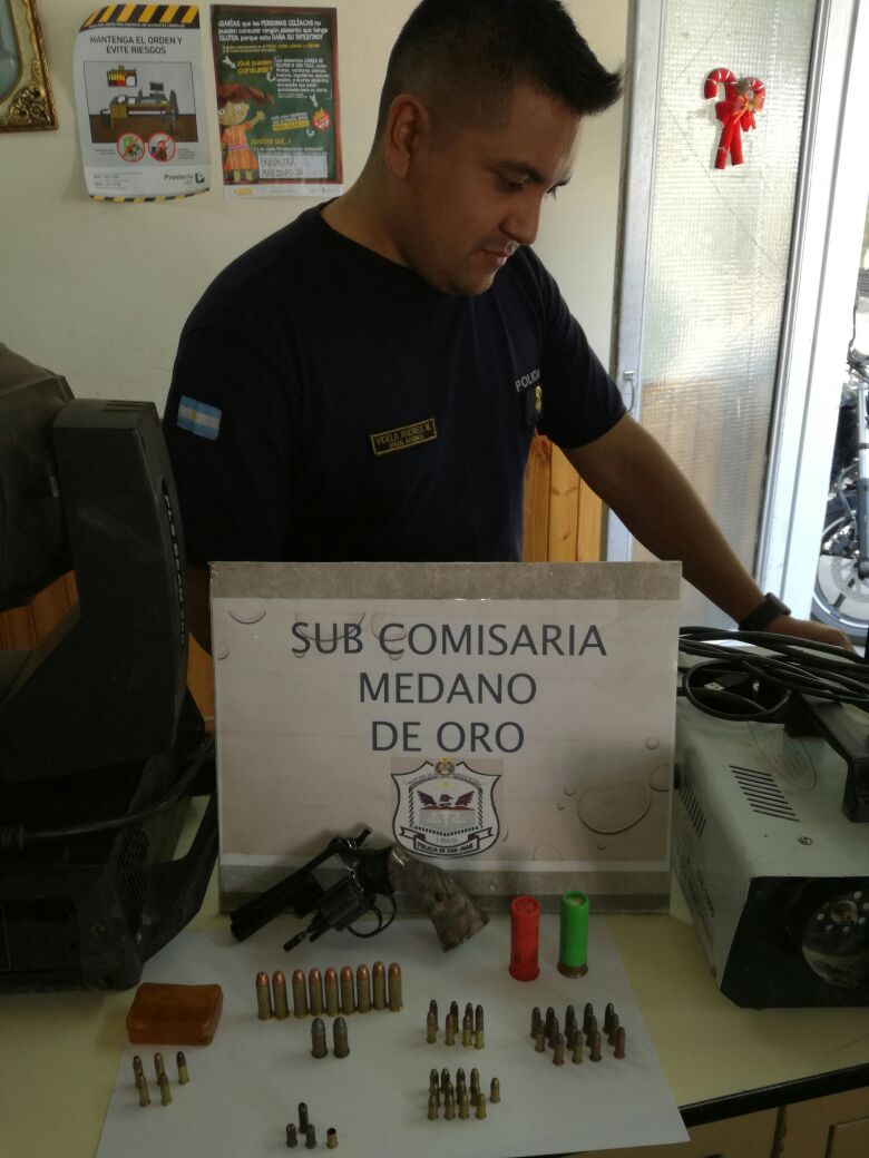Durante el allanamiento se secuestró también un arma y proyectiles. Entre ellas, un revólver calibre 22 largo Pasper con 5 proyectiles punga huecas. Y en un envoltorio, más proyectiles 51 balas, calibres 38, 3.65, 22 largo y corto, 2.70, 3 balas de fogueo y un cartucho de escopeta Antitumulto.