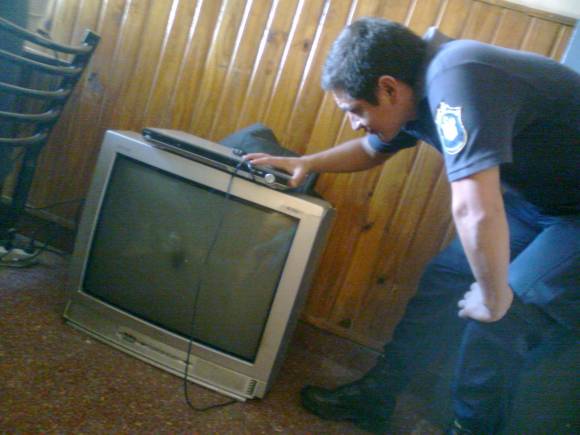 Personal del Comando Radioeléctrico con apoyo de la seccional 2da. apresaron a las 5 de ayer a dos sujetos de apellidos Luján y Falcón, luego de que los sorprendieran con un televisor 29, un DVD y la campera (foto) que habían robado de la casa de Gustavo Pastén en el barrio Costa Canal I, Capital, dijeron en la policía.