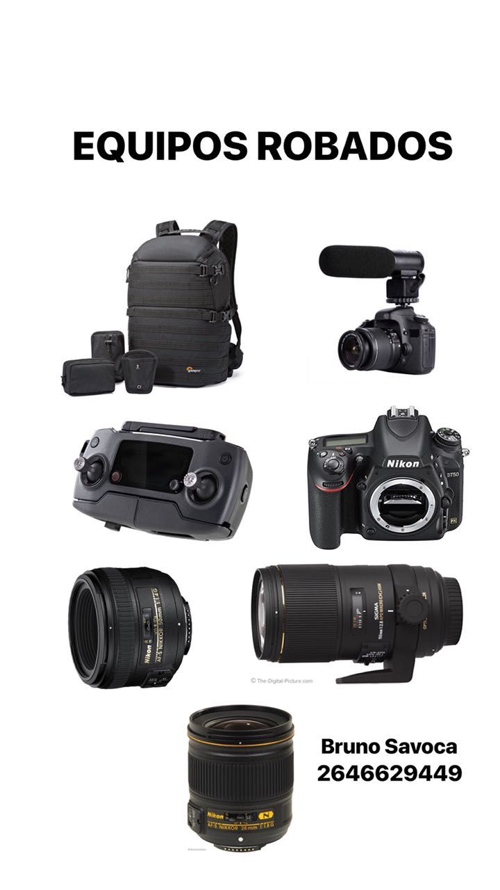 Un joven fotógrafo sanjuanino busca desesperado sus herramientas de trabajo que cerca de la medianoche fueron robadas de su auto. Estima que las pérdidas llegan a los 70 mil pesos.