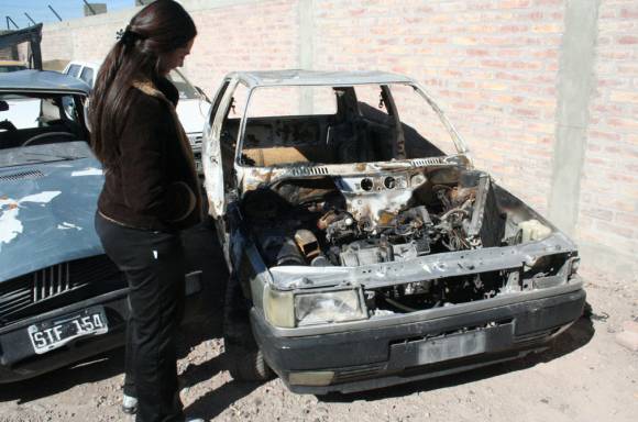 La dueña del vehículo, María Almirón (32 años) ni sabía que se lo habían robado de la puerta de su casa en el Bº Laprida, Santa Lucía, y mucho menos que se lo habían quemado.