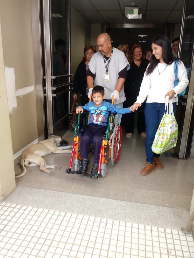 En silla de ruedas, como lo marca el protocolo del Hospital Rawson –donde estuvo en observación y en proceso de rehidratación- y de la mano de su hermana Victoria, el “nene del milagro” (como muchos lo apodaron) salió del nosocomio entre sonrisas y pura alegría.