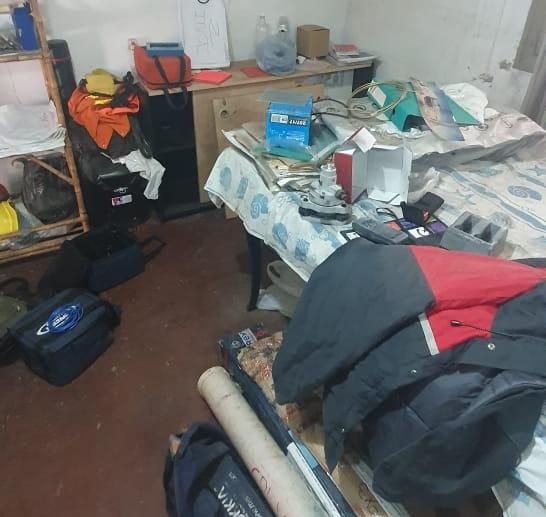 Una vez en el interior, revolvieron y desordenaron absolutamente todo, hasta que decidieron robar 3 notebooks (2 marca Lenovo y la otra, Dell), dos monitores, una pava eléctrica y una cafetera Nescafé.