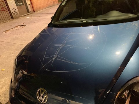 El viernes por la noche, al encontrar un auto frente al portón de su cochera, el agresor escribió en el capó con una llave la señal de prohibido estacionar. Pero además pateó el vehículo varias veces hasta abollar ambas puertas y le destrozó uno de los espejos retrovisores.