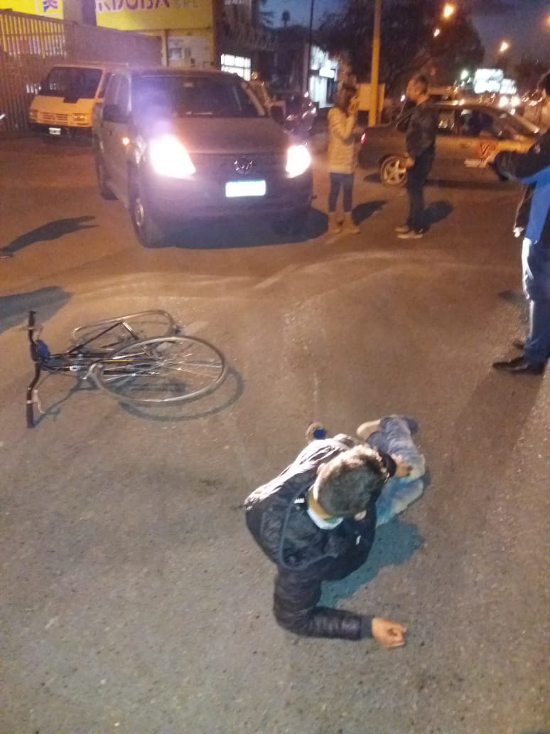 Durante la noche de hoy, se produjo un accidente de tránsito en España antes de Arenales, de Capital. Un ciclista fue literalmente pasado por encima por una camioneta que salía de la pinturería ubicada en el lugar.