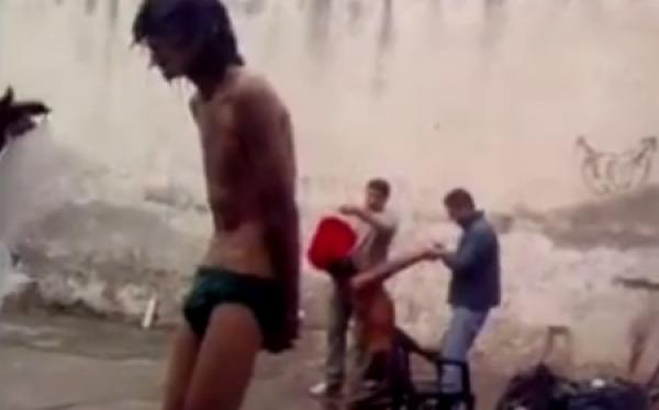 Salta, 19 de julio.- Las imágenes son realmente fuertes y no se recomienda que sean vistas por personas sensibles. Cinco policías de la localidad de General Güemes, Salta, fueron detenidos luego que se revelara un video en el que se los ve torturando a dos jóvenes en el patio de la comisaría. Los presuntos detenidos están semidesnudos y con las manos atadas por la espalda. En las crudas imágenes se puede ver que mientras mojan a una de las víctimas, al otro le colocan una bolsa en la cabeza y lo asfixian.