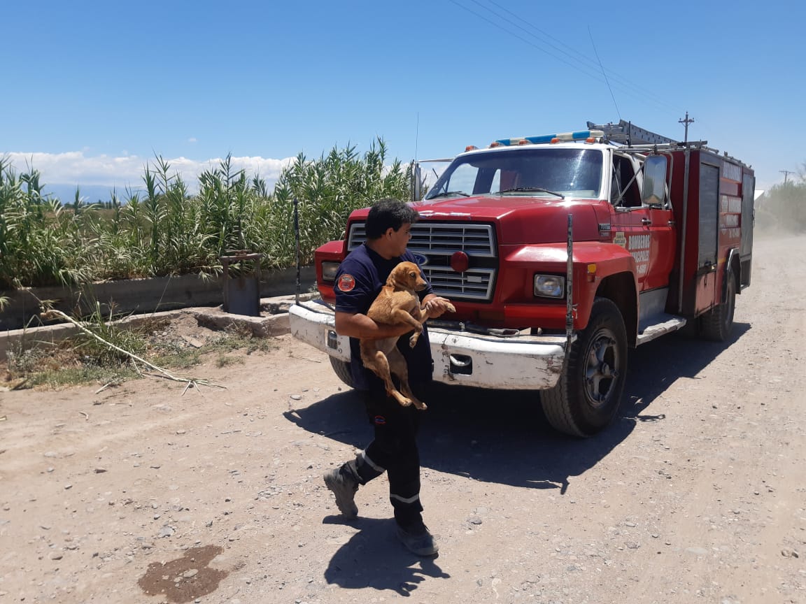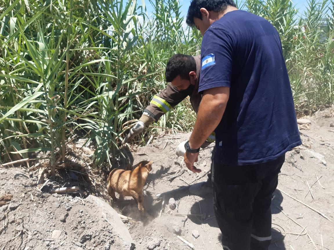Este lunes, alrededor de las 13.45, Bomberos de Santa Lucía rescataron a un perro que estaba atrapado en la corriente de agua de un canal, en las inmediaciones de calle San Juan y Burgos.