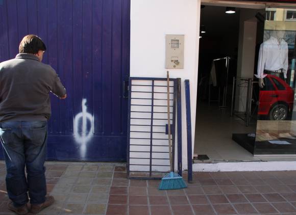 Sospechan que la tienda Onice estaba marcada por los ladrones. Justo al lado de la tienda pintaron con aerosol un círculo y una línea atravesada en el medio en forma vertical, como indicando algo. Y efectivamente, los delincuentes actuaron con mucha impunidad, al punto que se tomaron el trabajo de violentar las rejas y luego rompieron la puerta de blindex de esa tienda situada en calle Gobernador Rojas, casi Boulevard Sarmiento. El local, que está en cercanías de la Brigada Sur y la Seccional 6ta, abrió sus puertas al público el jueves pasado.