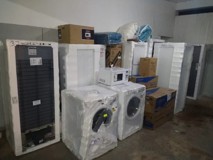Entre los elementos recuperados se puede ver, entre otros artículos, heladeras, aire acondicionados, lavarropas y televisores. Además de acolchados y elementos de limpieza.