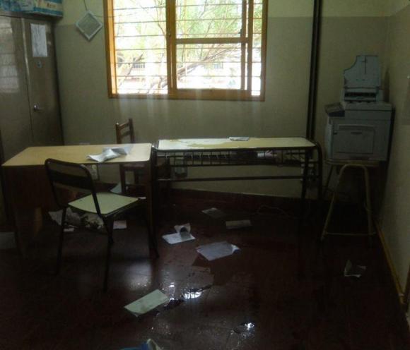 El establecimiento, ubicado frente a la plaza departamental y a una cuadra de la Seccional 8va, ayer sufrió el robo de una computadora y un teléfono, además arrojaron aceite quemado al interior de la dirección.