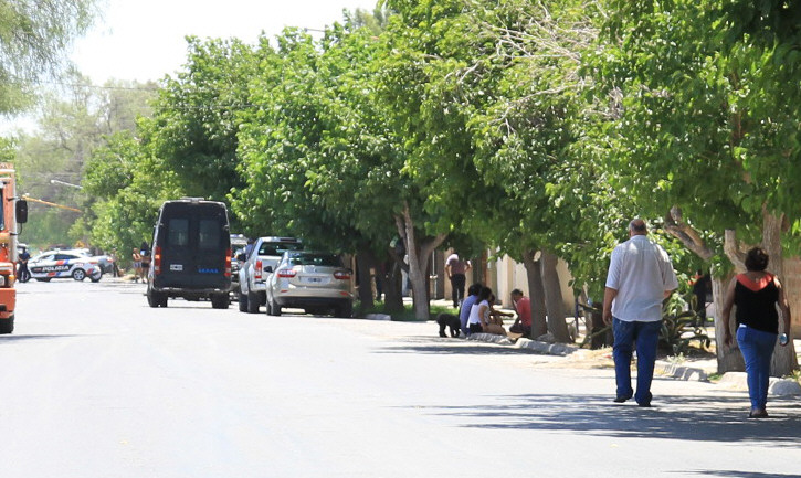Al menos tres horas de tensión (sobre las 10 y antes de las 14) se vivieron ayer en una casa del barrio Buenaventura Luna (Vidart, unos 100 metros al Norte de Aguilar) en Rawson, cuando un hombre se atrincheró con su hijo de 5 años. Según fuentes policiales, todo pasó después de un conflicto de Félix Olmos (40) con su mujer, quien decidió llamar a la Policía. Si bien en principio se dijo que Olmos amenazaba a su hijo, luego se supo que nunca le hizo nada y que incluso el niño dormía cuando los mediadores de la Policía buscaron hacerlo desistir, pues en un momento el hombre empuñó un gran cuchillo.