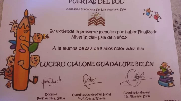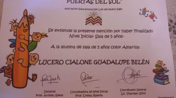 Este lunes la sala amarilla del jardín Puertas del Sol de San Luis terminó el jardín de infantes. Era la escuela a la que asistía Guadalupe Lucero, la nena que desapareció hace seis meses sin dejar rastro. Durante el acto de entrega de diplomas, Guadalupe fue recordada y recibió simbólicamente el suyo aunque fue recibido por su hermano mayor.