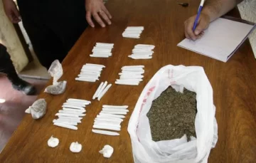 Un motociclista vio a una patrulla policial y arrojó una bolsa con 342 g. de marihuana, separada en un trozo y 74 ‘porros’, y 17 g. de cocaína antes de darse a la fuga, dijo la policía.
