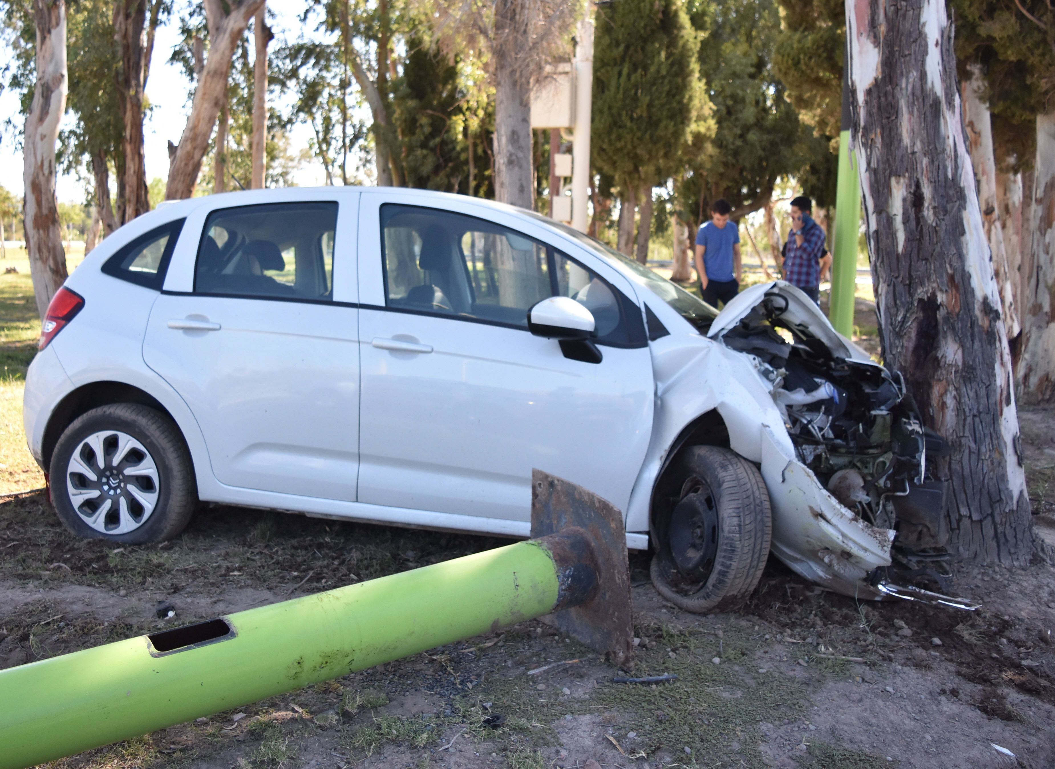 Un joven en un Citroën C3 arrancó un poste y terminó estrellado contra un árbol, tras perder el control del vehículo (¿se agachó a buscar un celular?) cuando transitaba por la Ruta del Sol, casi Galíndez, Rivadavia. Según la Policía, ocurrió a eso de las 8 y tuvo como consecuencia dos jóvenes con lesiones de distinta consideración y el vehículo muy dañado.