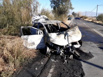 De acuerdo a la información policial, primero impactó contra un pilar y luego parte del vehículo se incendió. En el lugar trabajaron Bomberos de Rawson y una dotación de Bomberos voluntarios de Pocito.