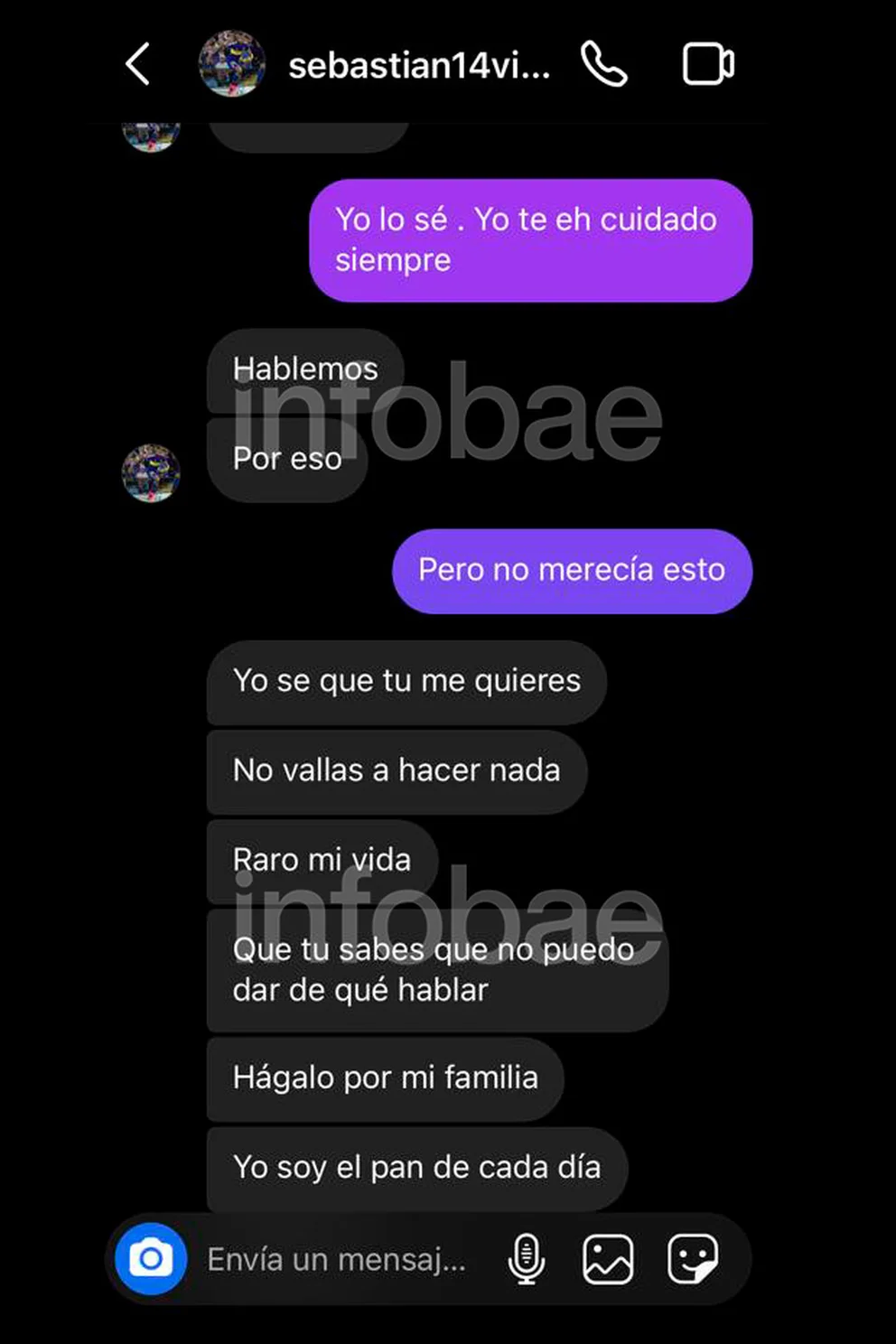 En una de esas conversaciones que trascendieron, el delantero colombiano, al leer lo que su pareja le contaba de la noche anterior, le pidió que no “haga nada raro”, en clara referencia a una posible denuncia: “Yo se que tu me quieres. No vayas a hacer nada raro mi vida. Que tu sabes que no puedo dar de que hablar. Hágalo por mi familia. Yo soy el pan de cada día”.