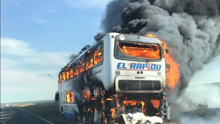 Momentos de gran tensión vivió un grupo de pasajeros que viajaba en una unidad de la empresa El Rápido cuando, por causas que se desconocen, el miércoles por la mañana se incendió la totalidad del vehículo que había salido de Mar del Plata y debía llegar a Bolívar, previo paso por Olavarría.